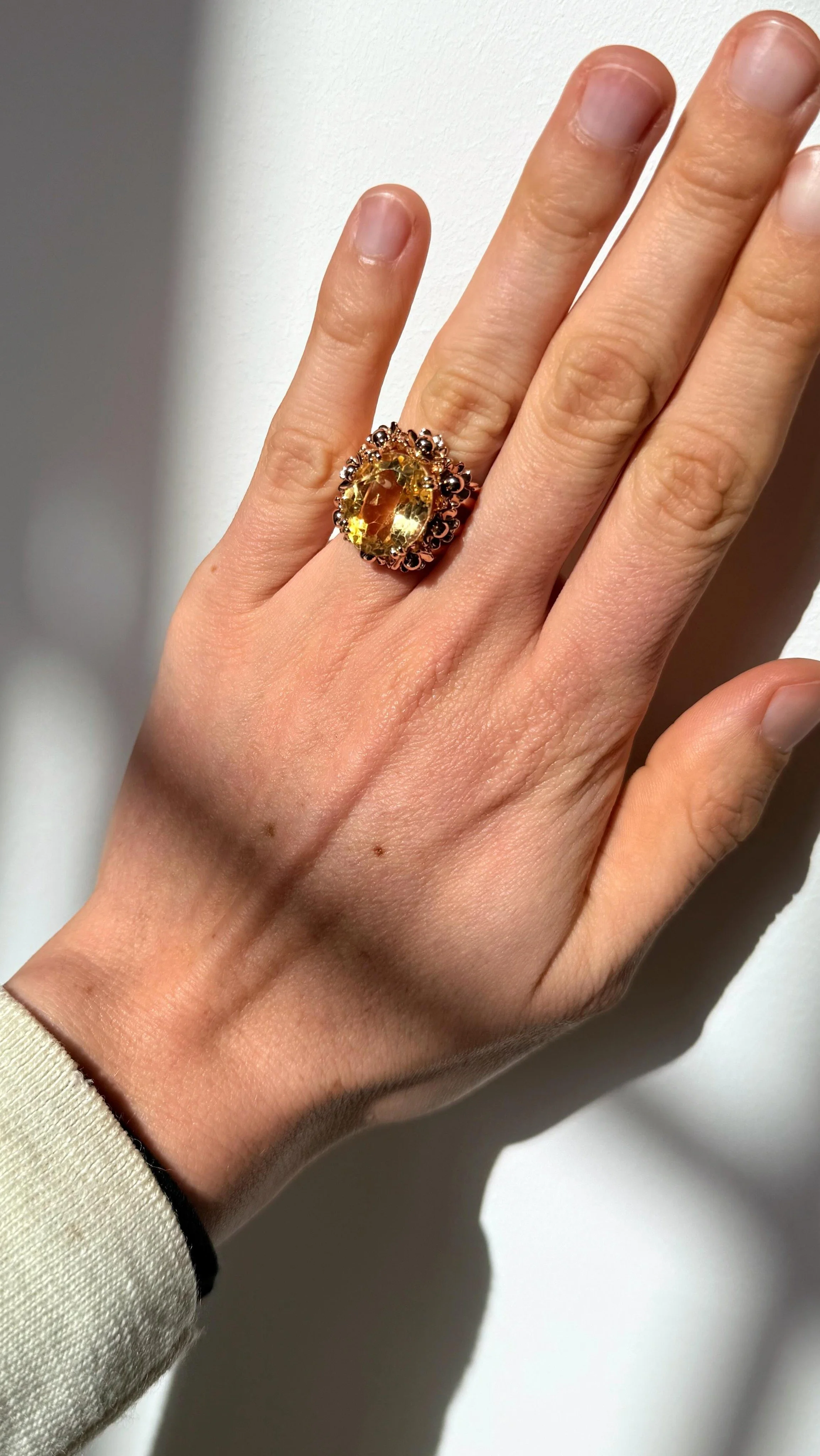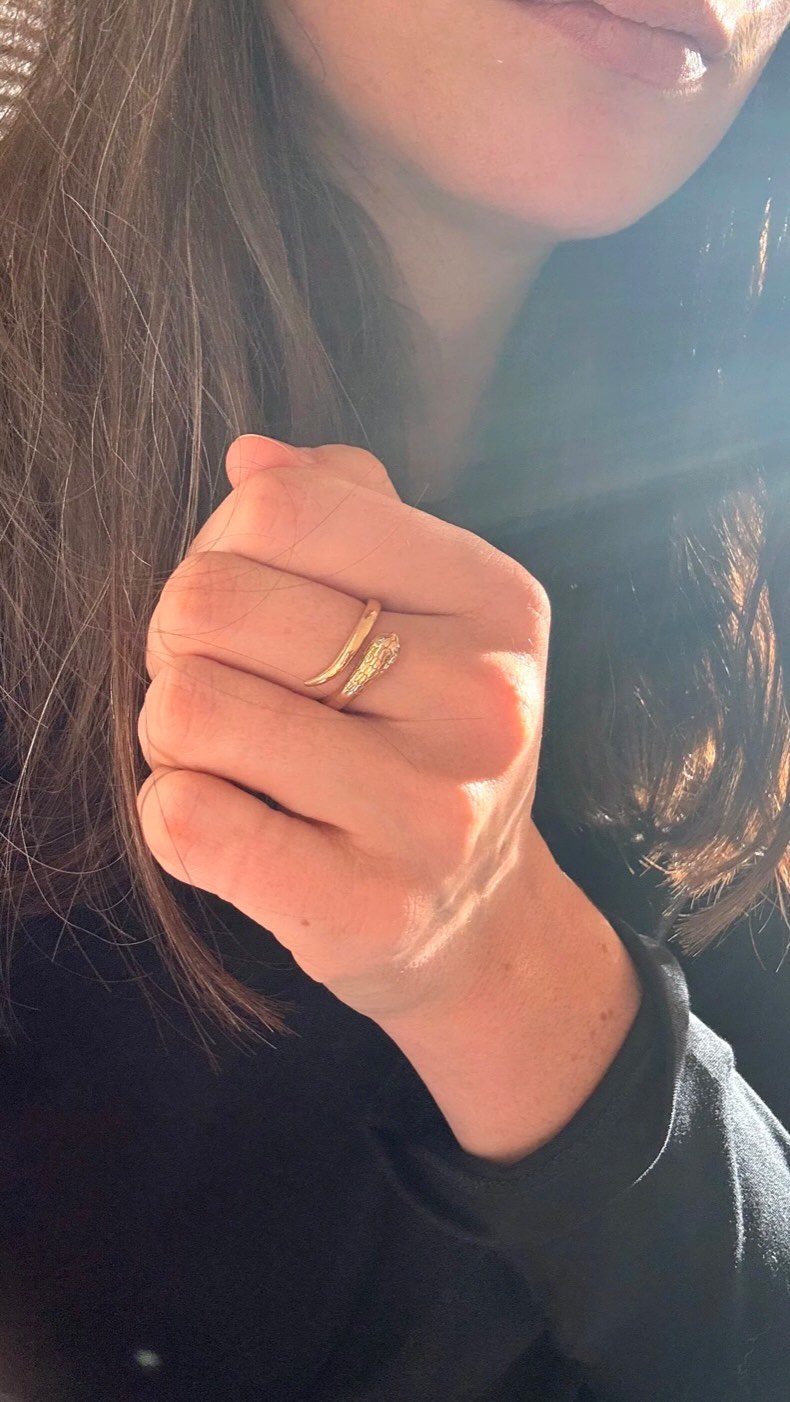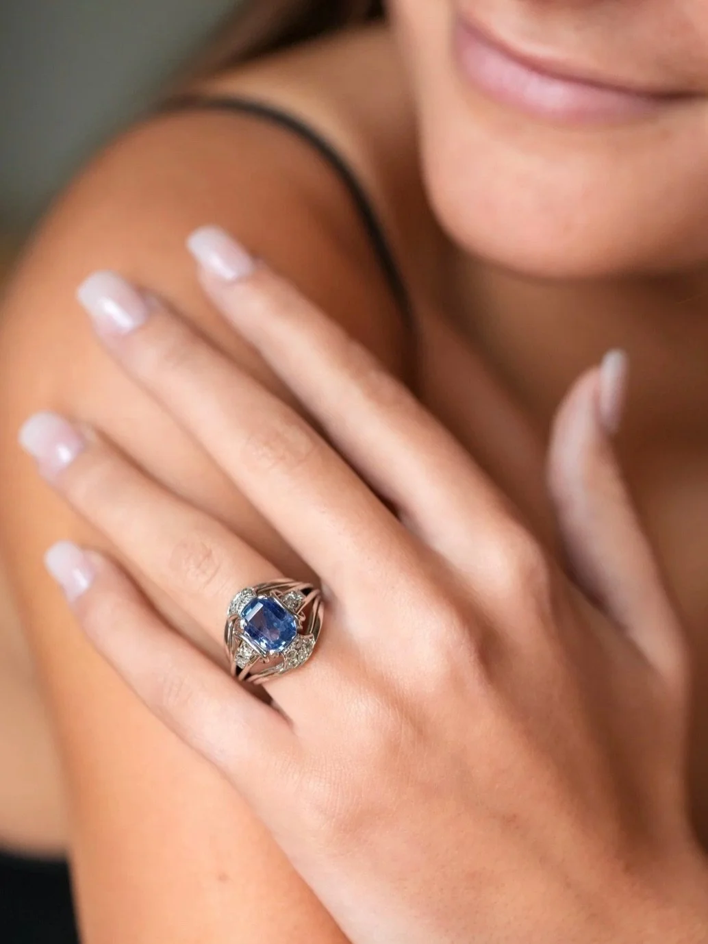 « Je viens de recevoir le “petit trésor” et je me dis: “waou qu’elle est belle ma bague elle était faite pour moi, elle me va si bien.” Bref, aucun regret, en plus j’adore les diamants champagne qu’on ne trouve que très rarement. J’espère que je trouverai de nouveau mon bonheur dans vos futures nouveautés. Pas de doute j’y reviendrai et vous recommanderez. Un grand merci a Laura-Fleur pour son accompagnement tout au long de la procédure d’achat. »